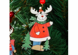 Новогодние подвески из дерева "Олень с подарками" 2 шт.45-6110