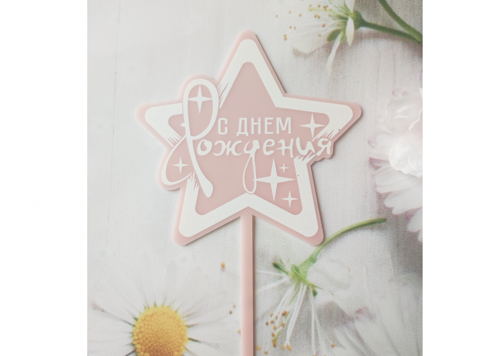 Топпер "С днем рождения" станет отличным дополнением к праздничному десерту.